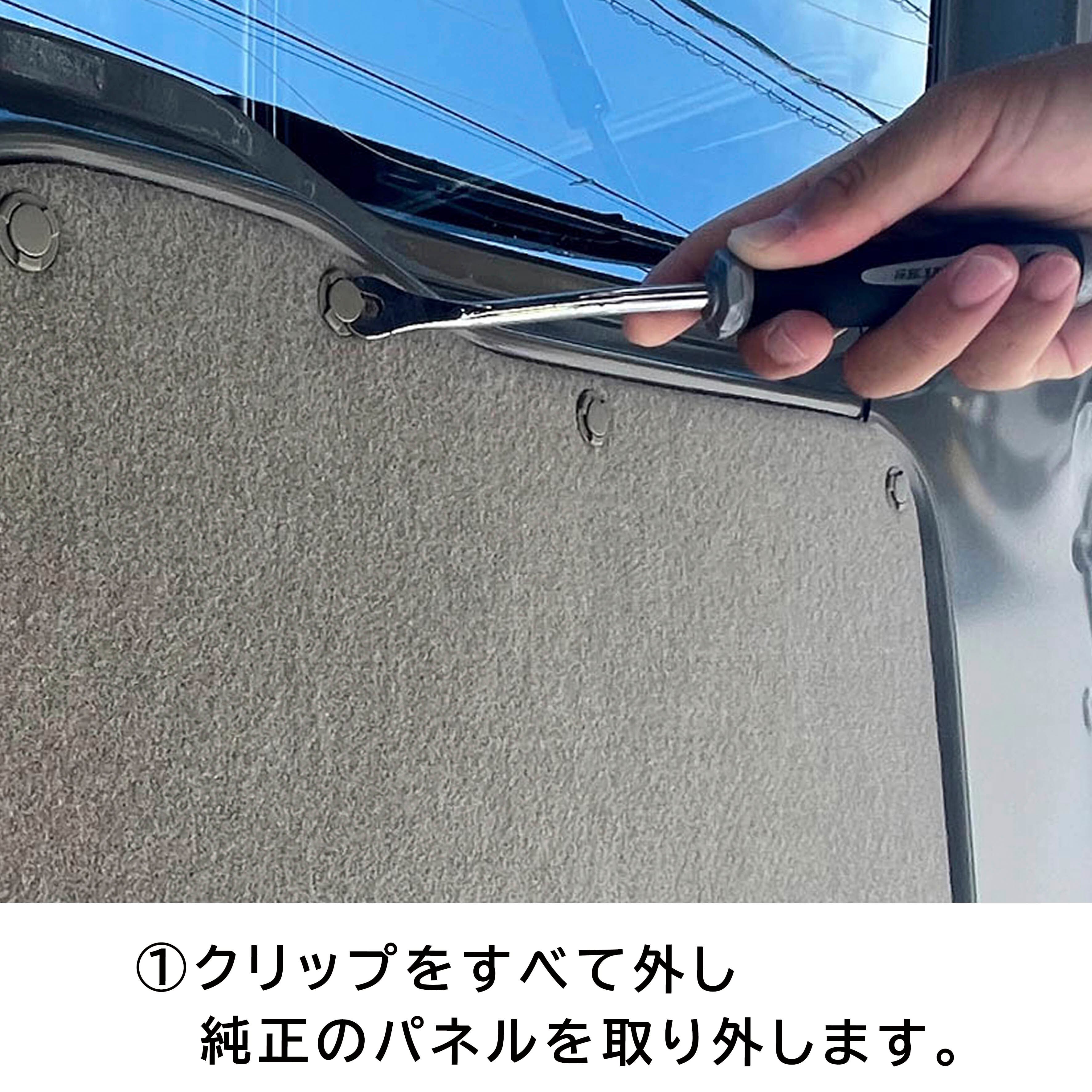 リアゲート部分のパネルを外し、パンチングボードに交換。
